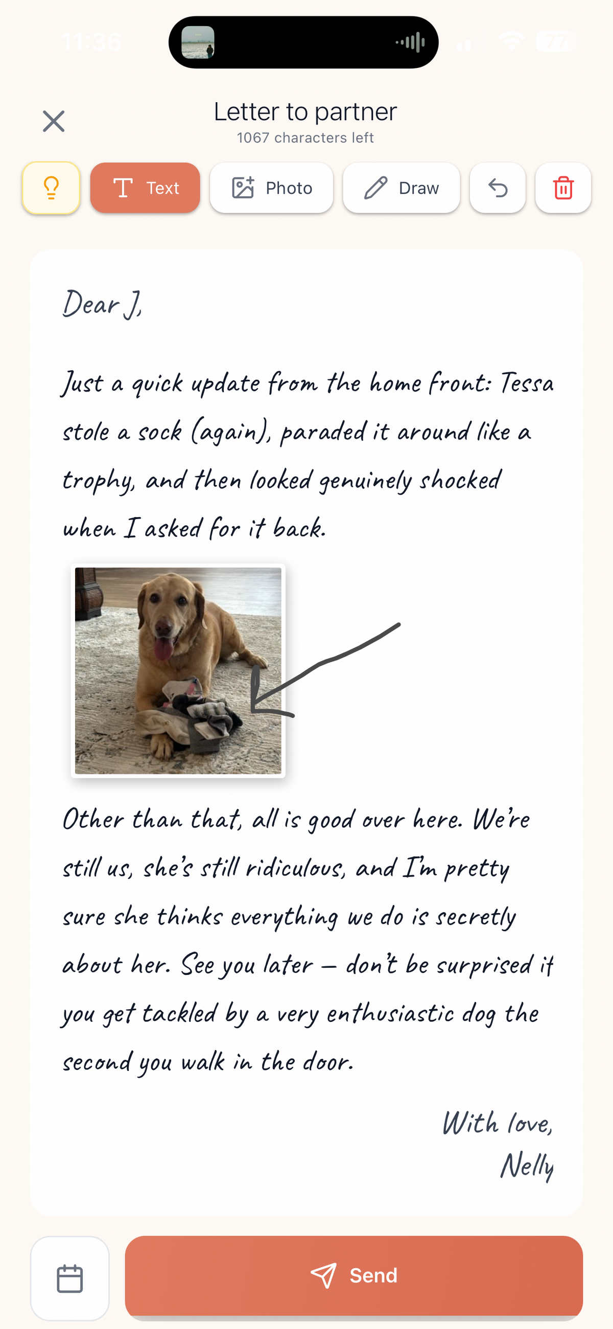 You can also schedule delivery, so letters arrive at the right moment—not instantly, not interruptively.